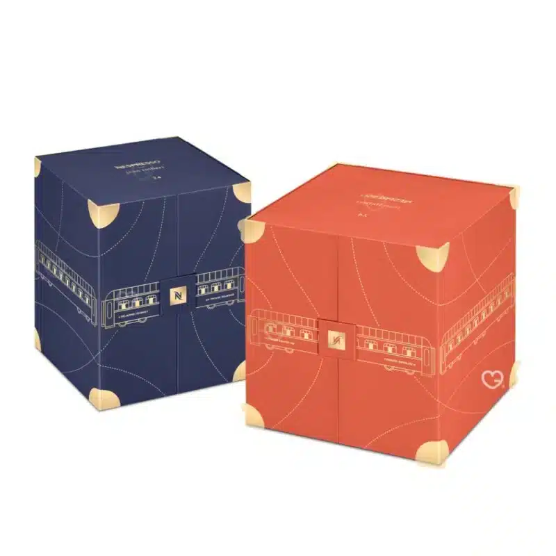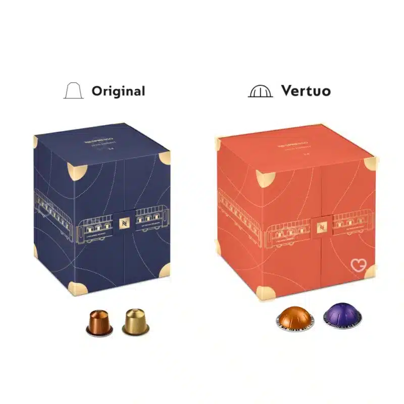 Inspired by Belmond’s art of travel. this coffee Advent calendar is available in Vertuo (red box) and Original (blue box). It features a different coffee every day!